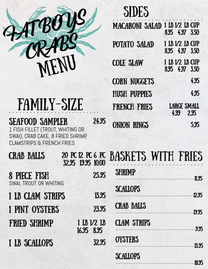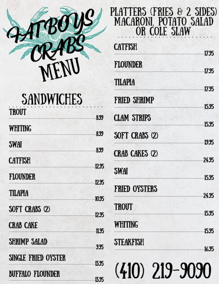 Fat Boys Crabs is Salisbury, Maryland's ultimate destination for the freshest and most delicious seafood! Whether you're on a mission to find the perfect crabs or are simply craving the taste of the ocean, Fat Boys Crabs has you covered for all your carry out seafood cravings.