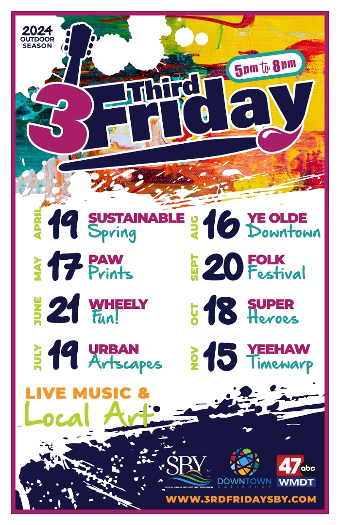 SALISBURY, MD. - The City of Salisbury's Arts, Business and Culture Department is gearing up for the outdoor 3rd Friday season, and there's a theme for everyone, along with some updates for 2024. Third Friday is a free arts event featuring vendors, live music and activities held in Downtown Salisbury on the third Friday of each month from 5-8 p.m.
