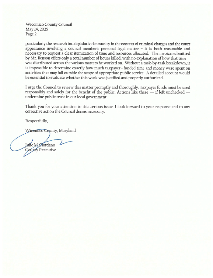 -Letter From Wicomico County Executive Julie Giordano (2-Pages)