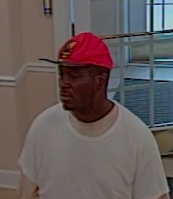 The initial investigation revealed that a black male subject had entered the bank and presented a demand note to one of the tellers. After receiving an undisclosed amount of US currency, the suspect fled on foot toward Discount Land Road. Immediately prior to the robbery, during a canvass of neighboring businesses, officers also discovered that the same suspect shoplifted from the Dollar General next door to the bank.