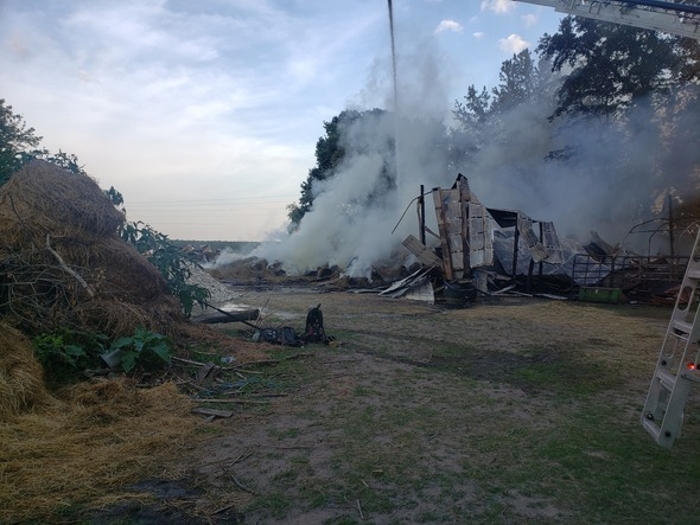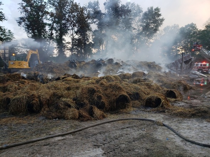 The affected structure, a 40x120-foot pole barn, sustained an estimated $100,000 in structural damage, along with an additional $50,000 in losses to its contents.