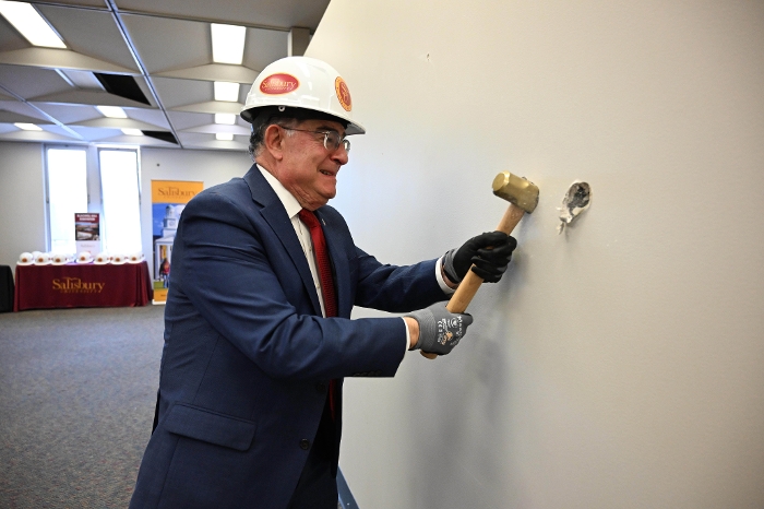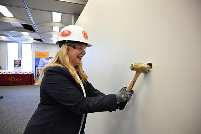 Salisbury, MD - Salisbury University President Carolyn Ringer Lepre, University System of Maryland (USM) Chancellor Jay Perman, and members of the USM Board of Regents and SU officials took part in a ceremonial construction launch at SU's Blackwell Hall.