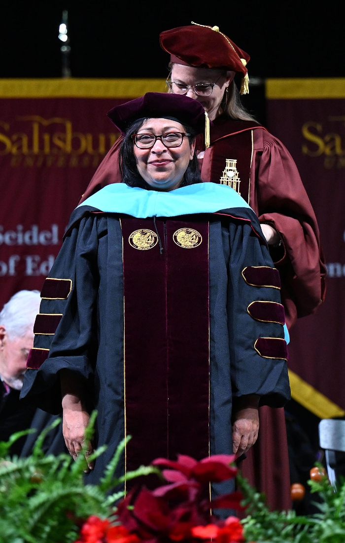 Chelsea Taylor of Hebron, MD, who earned her Ed.D. in literacy studies, served as the student speaker for the Wednesday evening graduate ceremony.