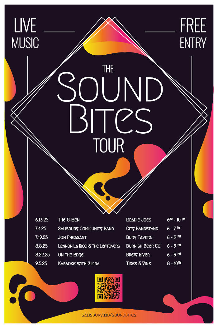 Presented in partnership with the Maryland Folk Festival and participating venues, the Sound Bites Tour aims to drive foot traffic downtown, support local artists, and energize Salisbury's cultural scene.