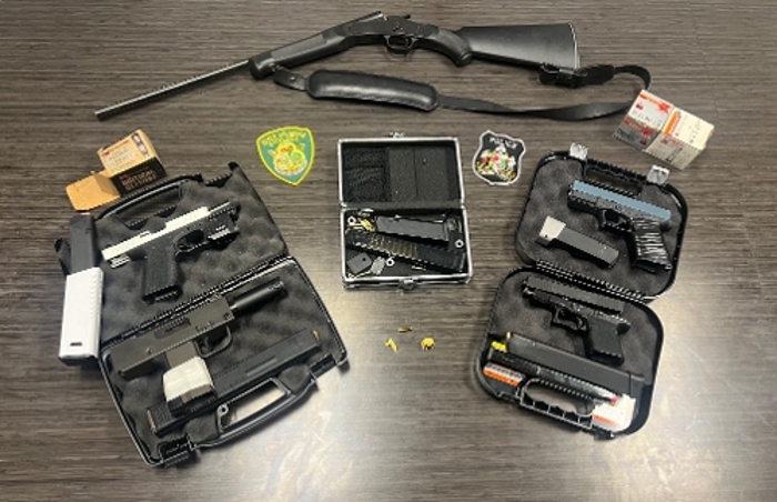 Investigators were able to locate and take two juvenile suspects into custody. Through a search incident to arrest, investigators located two 9mm handguns in a backpack next to the juvenile suspects. Both handguns were identified as "ghost guns" or untraceable firearms.