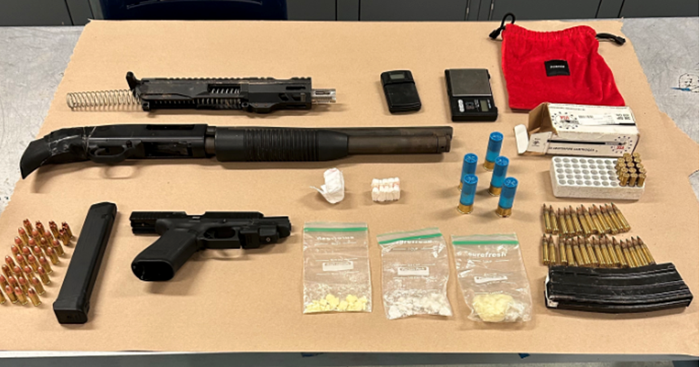 Both men, prohibited from possessing firearms or ammunition due to previous convictions, were transported to Troop 3 and charged with multiple offenses.