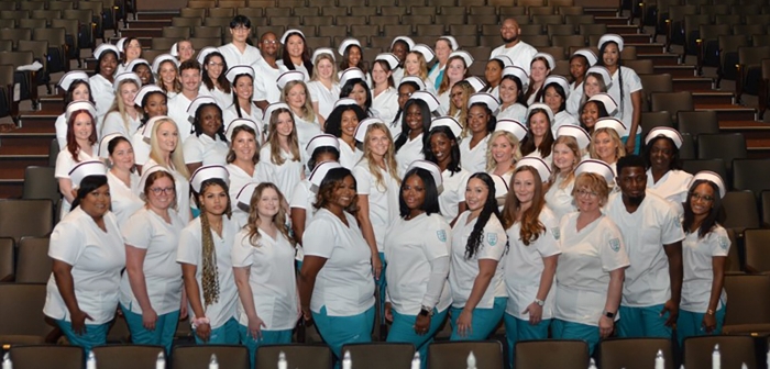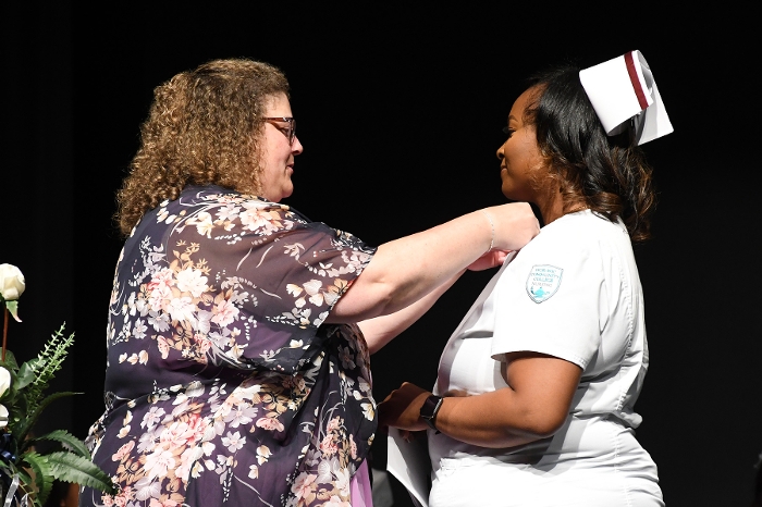 Following a rich tradition that dates back to the 12th century, the faculty presented each graduate with a pin. This ritual, carried forward by nursing pioneer Florence Nightingale in the 1800s, symbolizes the hard work, dedication, and academic success each student has achieved in their pursuit to become a professional in the field of nursing.