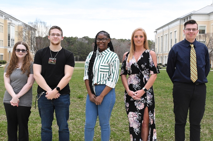 WORCESTER COUNTY - Students from Worcester County recently inducted into the Alpha Nu Omicron chapter of Phi Theta Kappa at Wor-Wic Community College are shown, from left, Brooke Benton, Dustin Bratten and Kiera White of Pocomoke City; Jamie Gill of Ocean City; and Hunter Simon of Berlin.